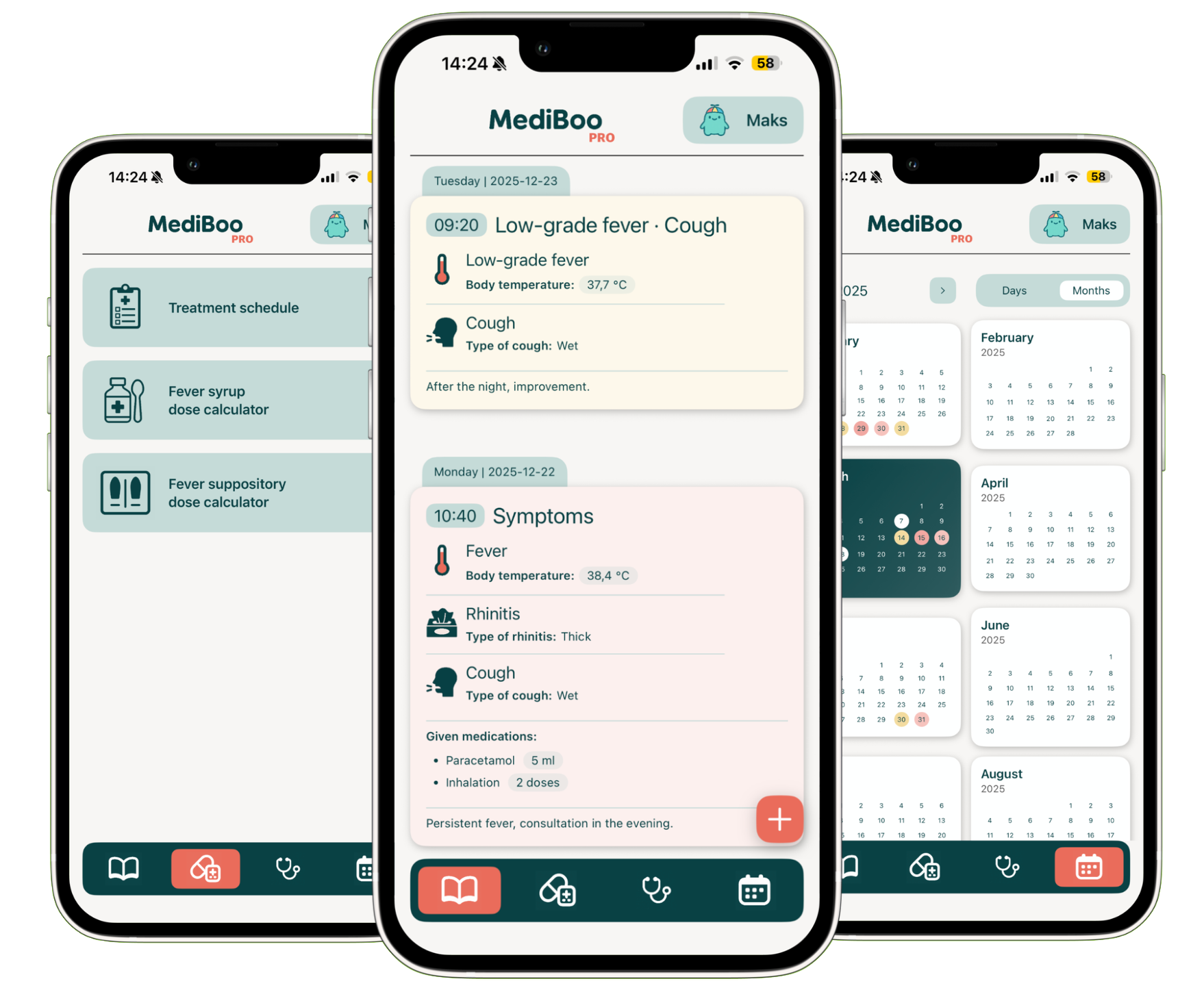 MediBoo helps you track the course of illness and treatment over time: symptoms, medication doses, visits, and test results. Simple, clear, and focused on keeping data safe.